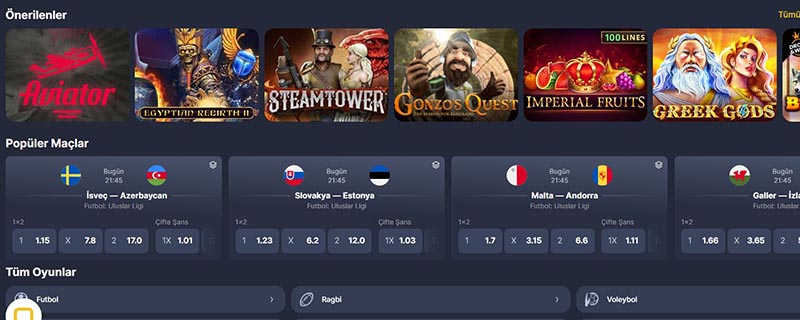 Gerçek krupiyeler ile oynana casino oyunlarından e – spor bahislerine kadar alternatif birçok hizmete erişim sağlayabilirsiniz.